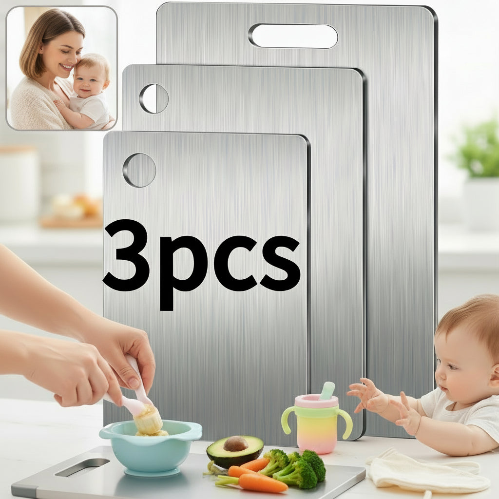 3pcs Premium Stainless Steel Baby Meal Prep Cutting Board – Antibacterial, Rust-Resistant, Easy-Clean Kitchen Tool for Safe Baby Food Preparation